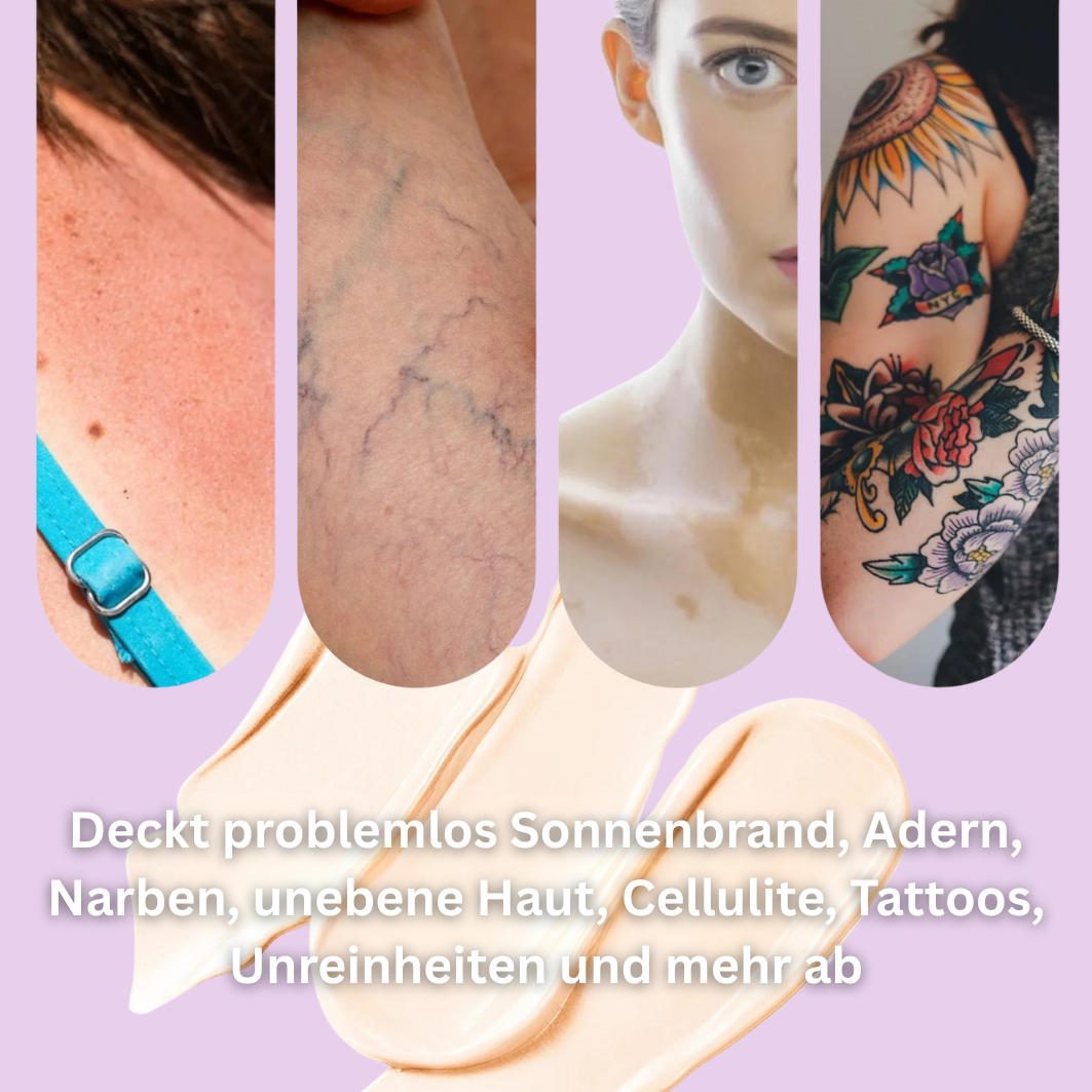 Du kennst das. Du gehst ins Bad, schaust in den Spiegel und das Erste, was du siehst bist nicht du, sondern deine Pigmentflecken, sichtbaren Äderchen, kleine Makel, Stoppeln, Erdbeerhaut oder ein Tattoo, das du heute lieber unsichtbar machen würdest. Und plötzlich ist der ganze Tag schon ein Stück schwerer. Du kannst das schönste Outfit anhaben doch du fühlst dich trotzdem unwohl - auf Hochzeiten, auf Geburtstagen, im Urlaub oder ganz normal in deinem Alltag.
